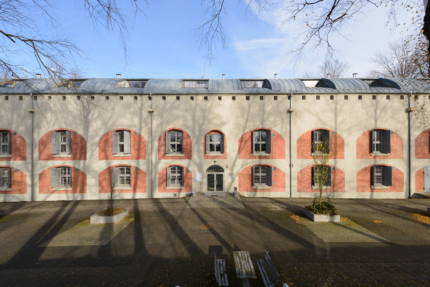 Odtworzono zniszczone stalowe wyłazy, drzwi i klapy, a wszystkie nowe detale architektoniczne podporządkowano tej stylistyce.